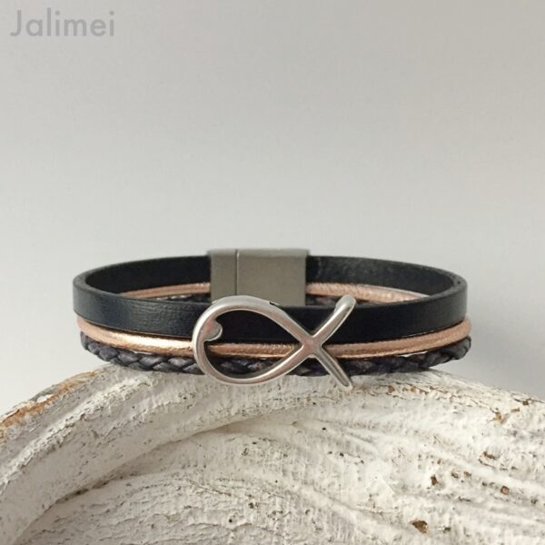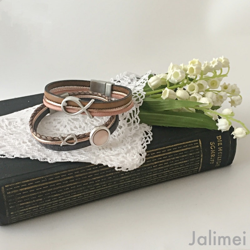 Bei Jalimei bekommst Du einzigartige Armbänder, bestehend aus echtem, hochwertigem Leder in Kombination mit dem klassischen Symbol des Fisches. Alle Armbänder werden in liebevoller Handarbeit gefertigt und sind dadurch individuell wie der eigentliche Festtag der Konfirmation oder Firmung.
