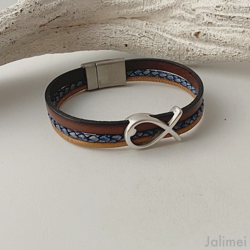 Mit Hilfe eines hochwertigen Edelstahl-Magnetverschlusses lässt sich das Armband Fisch Konfirmation braun-blau leicht an- und ablegen.