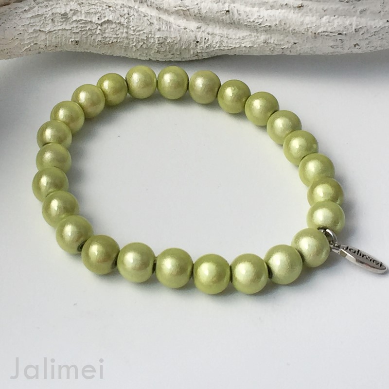 Schönes Armband aus hellgrünen Miracle Bead-Perlen in der Stärke 8 mm. Das Besondere an diesen Perlen ist, dass sie schön schimmern bzw. leuchten, wenn Licht darauf fällt.