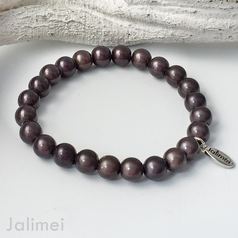 Schönes Armband aus schwarzen (anthrazit) Miracle Bead-Perlen in der Stärke 8 mm. Das Besondere an diesen Perlen ist, dass sie schön schimmern bzw. leuchten, wenn Licht darauf fällt.