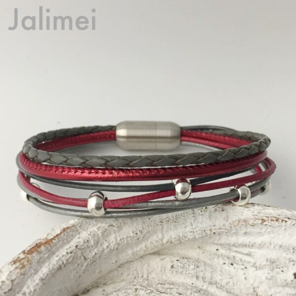 Zu diesem wunderschönen Collier Glitzer mit Kugel weinrot grau kann perfekt das „Lederarmband Nappa weinrot grau“ kombiniert werden.