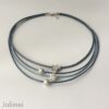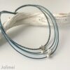 Es wird nur das Collier geliefert. In meinem Shop findest Du ein passendes Armband unter „Lederarmband Nappa antikblau“.