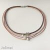 Es wird nur das Collier geliefert. In meinem Shop findest Du ein passendes Armband unter „Lederarmband Nappa beere“.