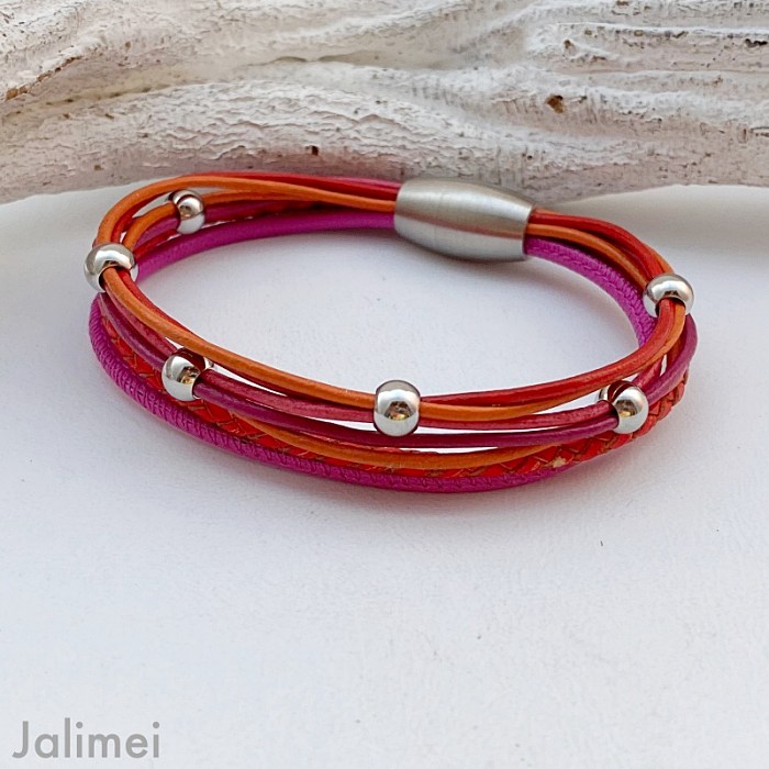 Du liebst besondere Farbspiele? Dann schau Dir unser knalliges Lederarmband Nappa pink-orange-rot an! Ich liebe diese Farbkombination! Sie macht einfach gute Laune und peppt jedes schlichte Outfit auf.