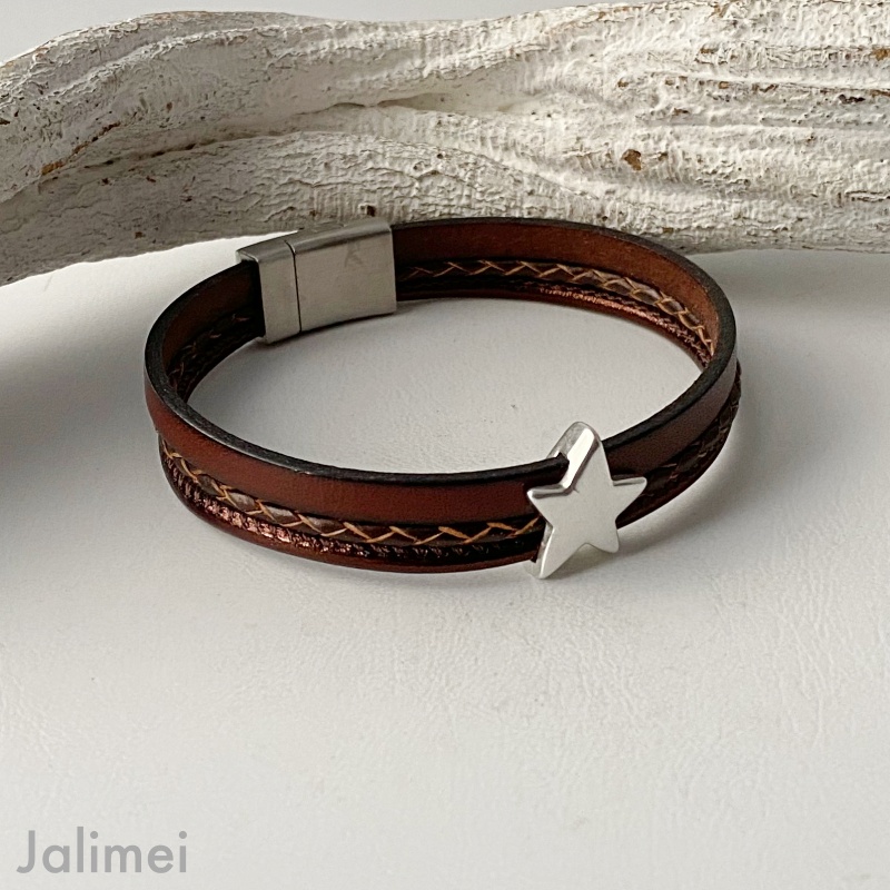 Auch ein schönes braunes Armband mit Stern ist das „Lederarmband mit Stern braun„. Es ist etwas breiter.