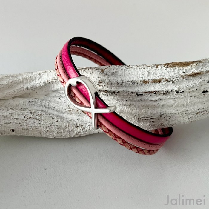 Du suchst nach einem passenden Geschenk zur Konfirmation, Firmung oder Taufe? Dann schau Dir unser Lederarmband Fisch Konfirmation pink an.