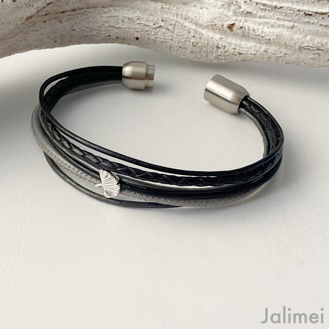 Der Ginkgoblatt ist ein Symbol für Hoffnung, Fruchtbarkeit, Unbesiegbarkeit und ein langes Leben. Entdecke jetzt unser Lederarmband Ginkgoblatt schwarz-grau! Die Farben sind so schön schlicht und trotzdem sehr elegant.