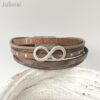 Schönes Armband bestehend aus 6 verschiedenen echten Lederbändern in verschiedenen Taupe-Tönen. Aufgepeppt ist es mit einem Metallschieber Infinity und wird mit einem hochwertigen Edelstahl-Magnetverschluß geschlossen.