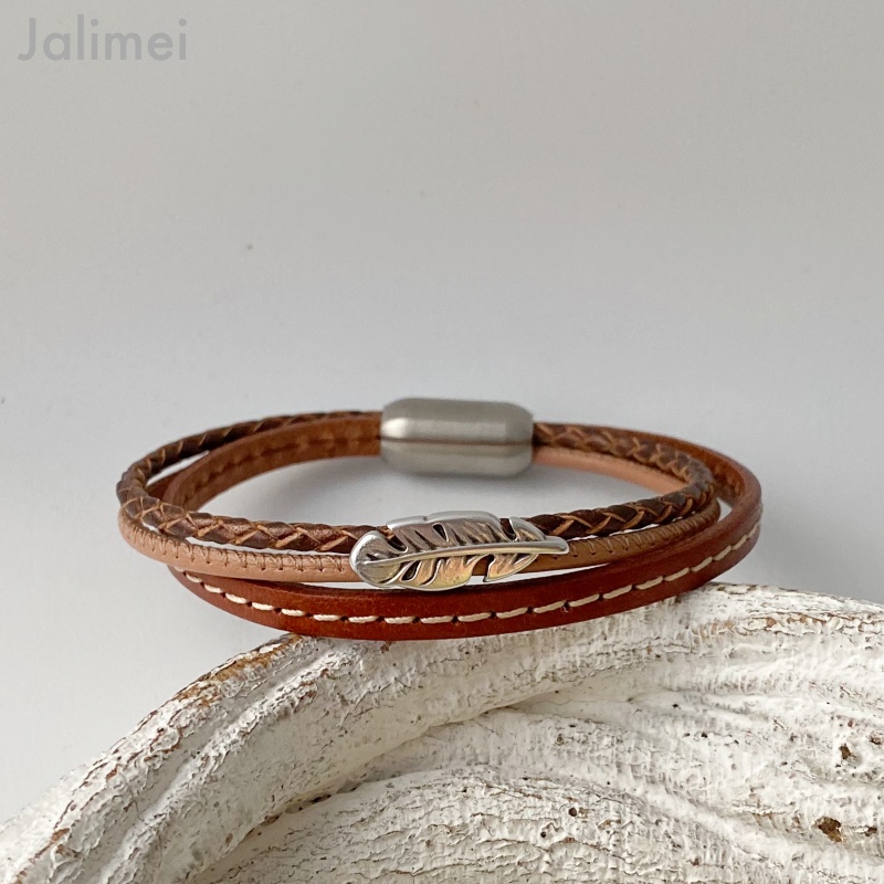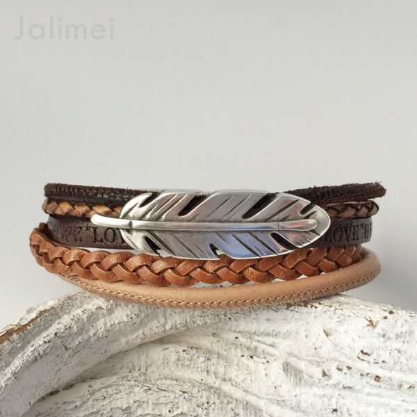 Das Lederarmband kleine Feder braun lässt sich mit Hilfe eines hochwertigen Edelstahl-Magnetverschlusses leicht an- und ablegen.
