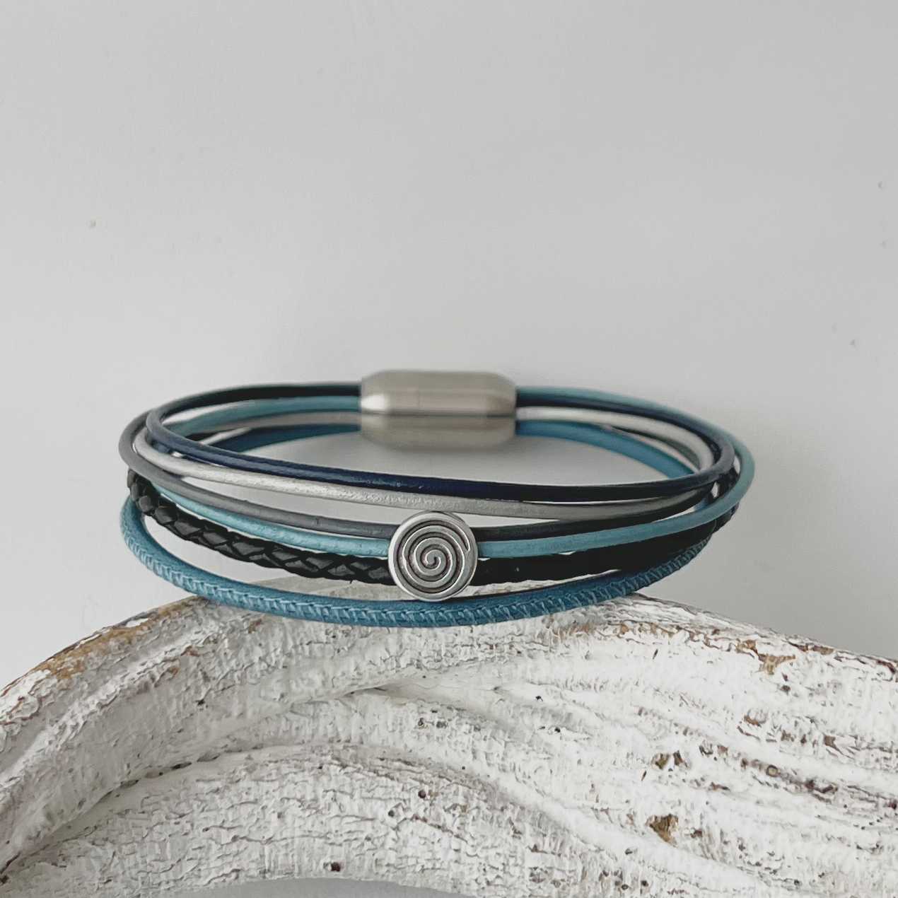 Dir wird das Lederarmband kleine Spirale blau schwarz gefallen, wenn Du maritimen Schmuck liebst!