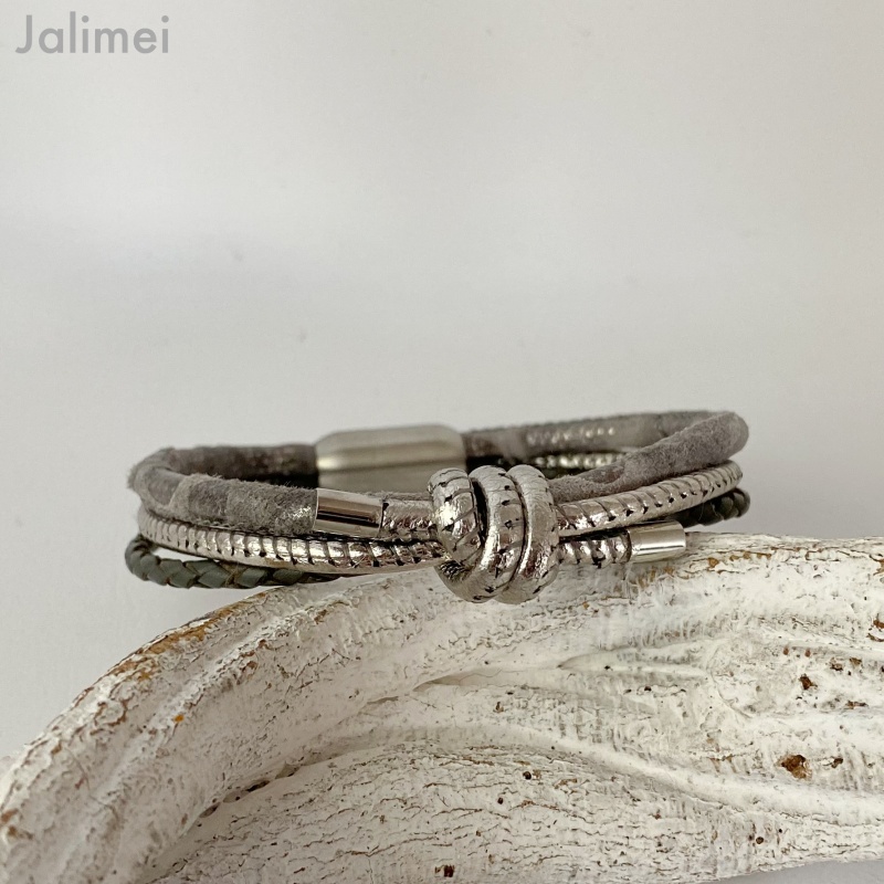 Schließen lässt sich mein raffiniertes Lederarmband mit Knoten in grau mit einem hochwertigen Edelstahlmagnetverschluß.