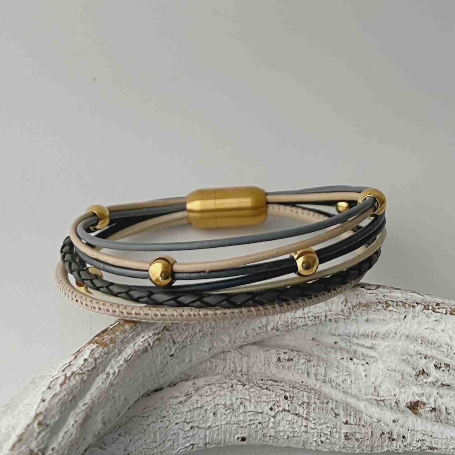 Schau Dir dieses tolle Lederarmband mit den goldenen Elementen an! Das Lederarmband Nappa gold grau beige ist ein echtes Lieblingsschmuckstück!