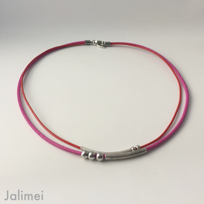 In meinem Shop findest Du unter „Ledercollier Perle pink-rot“ eine passende Kette zum Armband.
