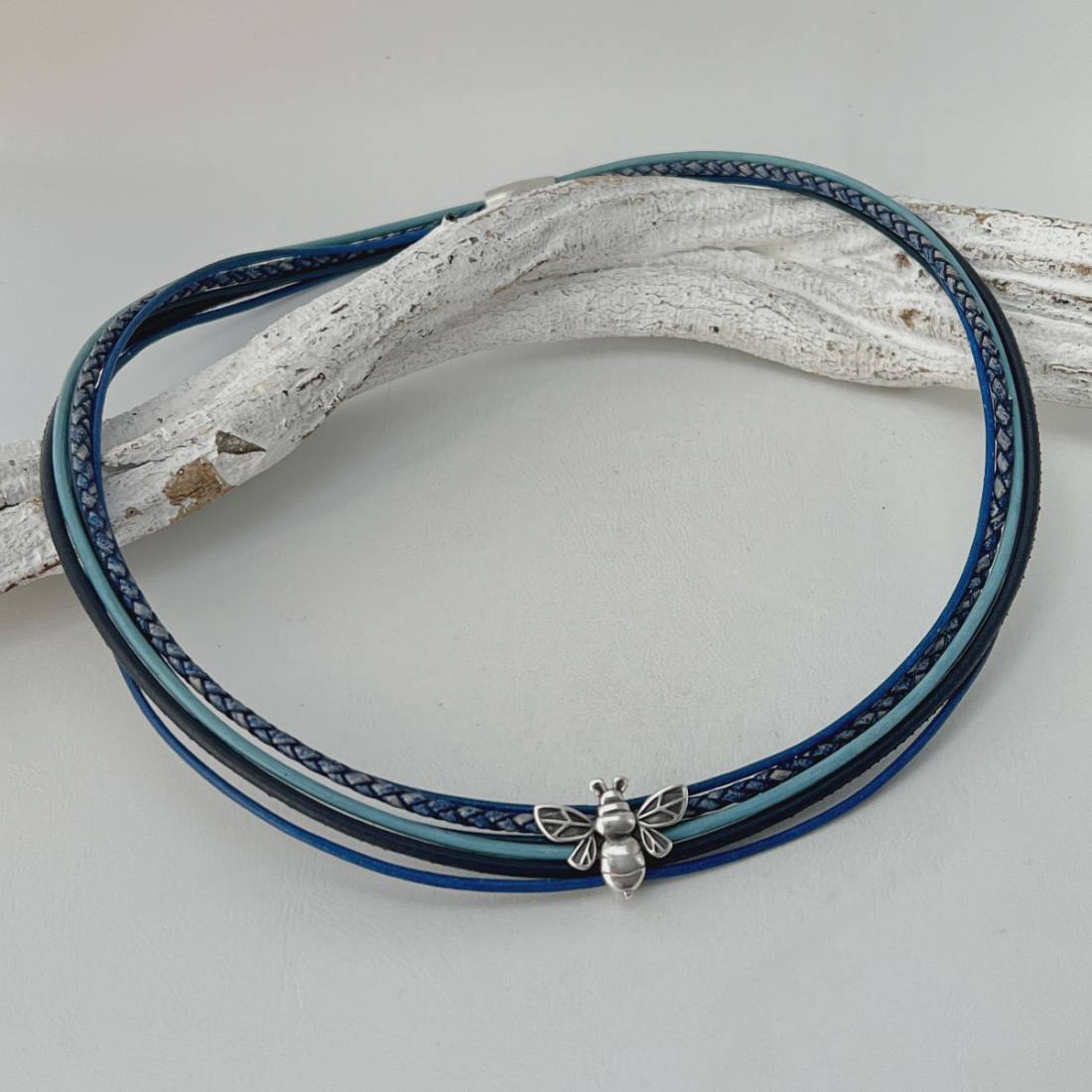 Zu dieser Kette findest Du in meinem Shop auch das passende Armband „Lederarmband mit Biene antikblau„.