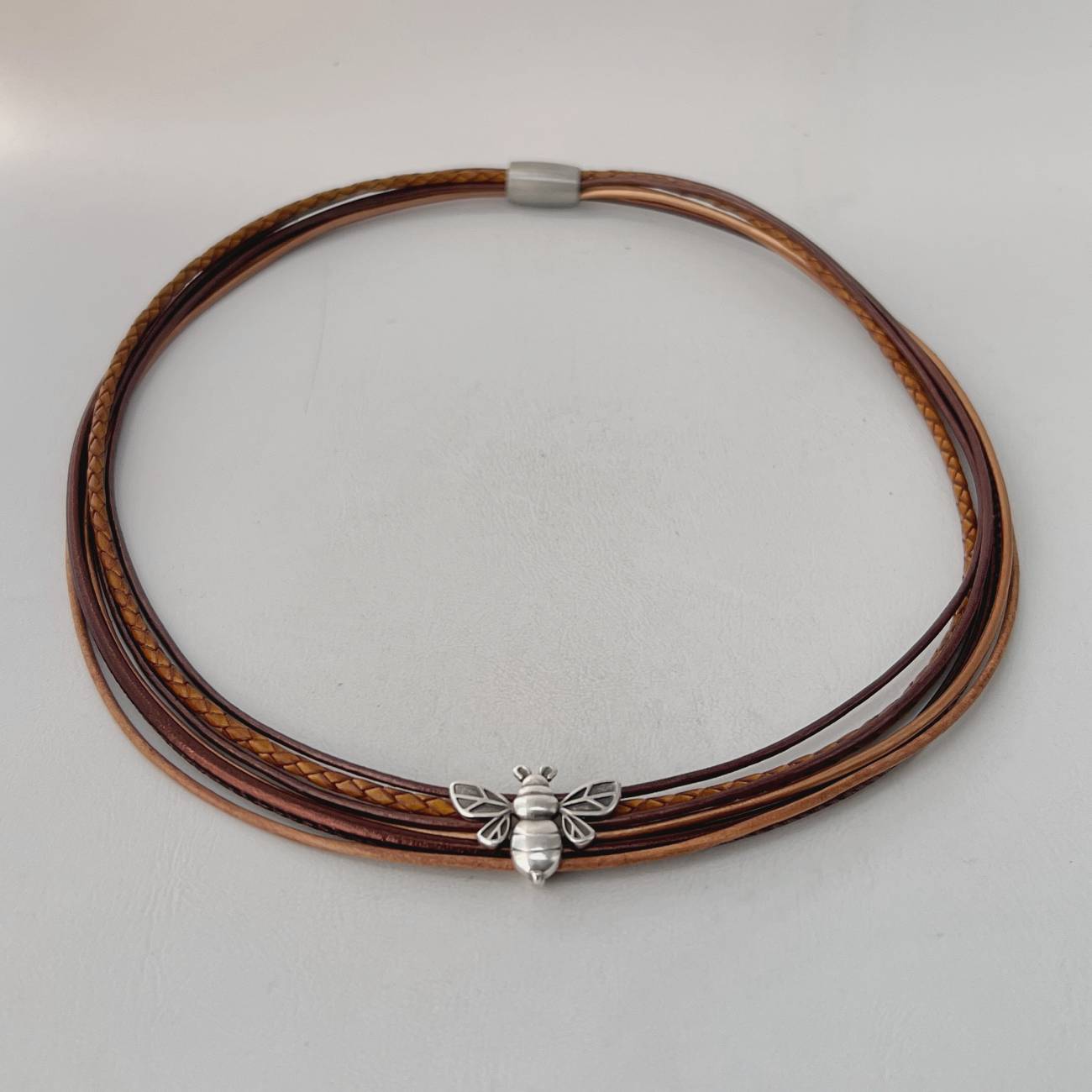 Zu dieser Kette findest Du in meinem Shop auch das passende Armband „Lederarmband mit Biene braun„.