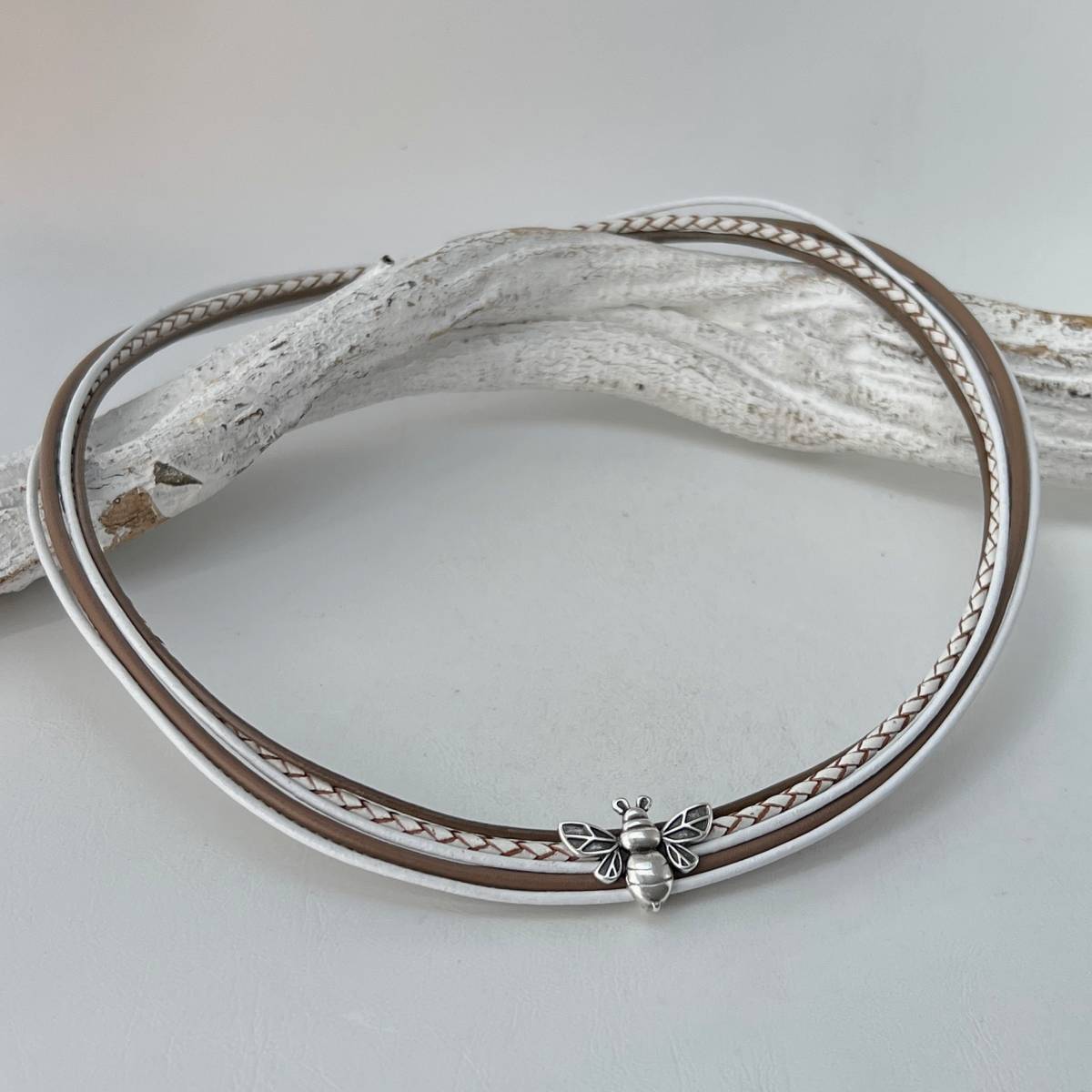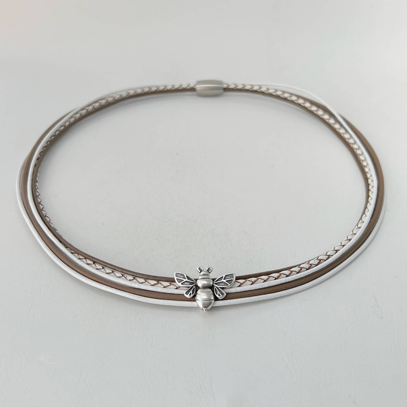 Zu dieser Kette findest Du in meinem Shop auch das passende Armband „Lederarmband mit Biene taupe„.