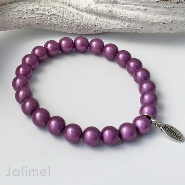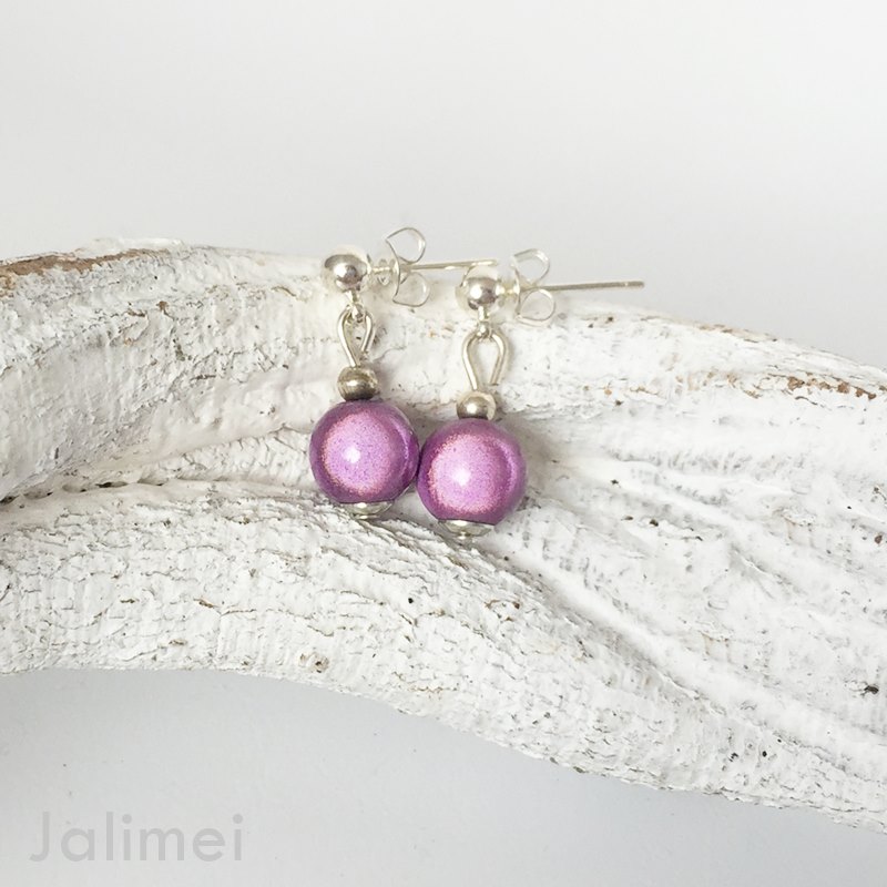 Ein Paar Ohrstecker mit einer hängenden Miracle Bead Perle in hellem Lila in einer Stärke von 8mm.