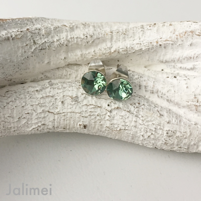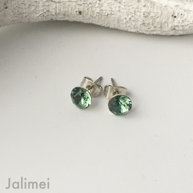 Ohrstecker mit einem Stein von Swarovski® 6 mm in der Farbe erinite (grün). Der Stift und die Feder bestehen aus Titan.