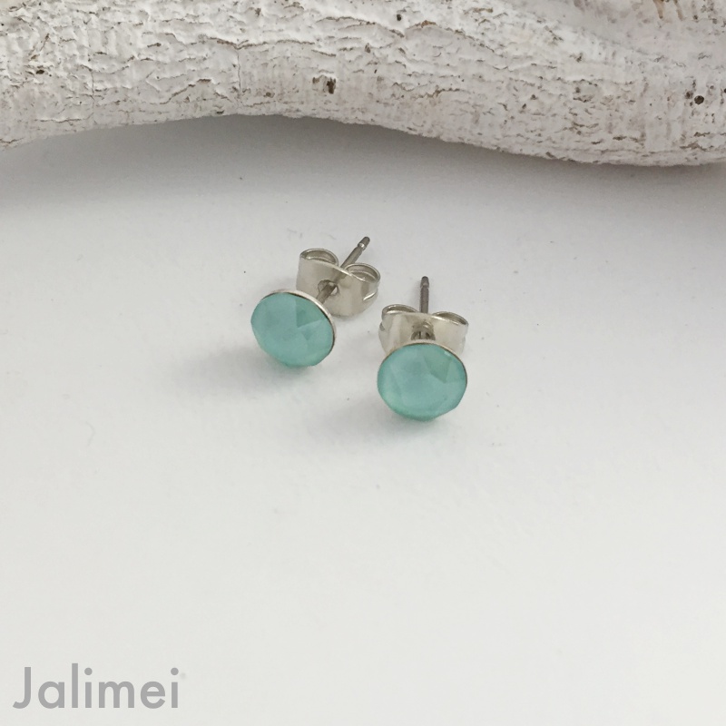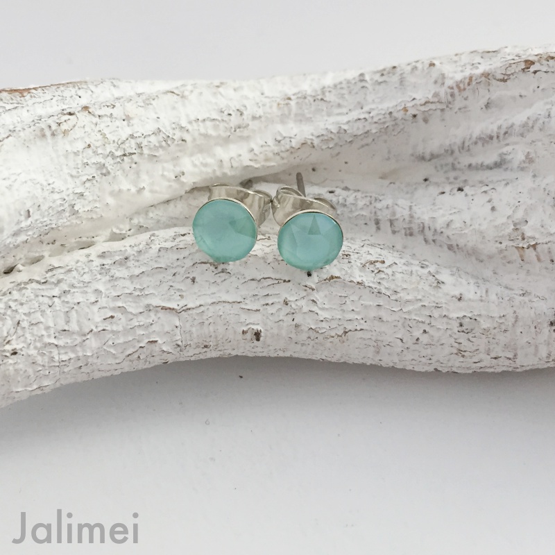 Ohrstecker mit einem Stein von Swarovski® 6 mm in der Farbe mint grün. Der Stift und die Feder bestehen aus Titan.