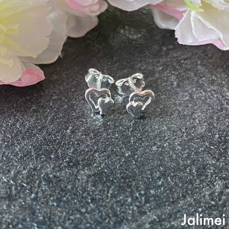 Der kleine Ohrstecker doppeltes Herzchen aus 925er Sterlingsilber ist besonders niedlich: ein offenes Herz, das von einem geschlossenes Herzen überlappt wird. Der Ohrstecker doppeltes Herz hat einen Durchmesser von ca. 5 mm.