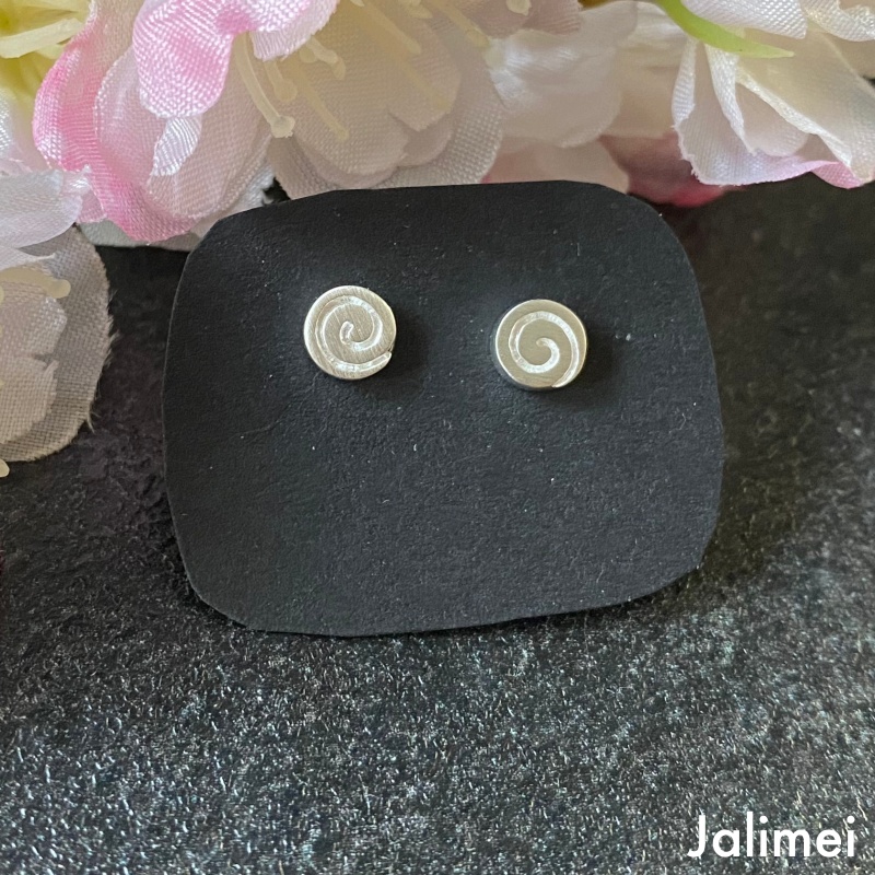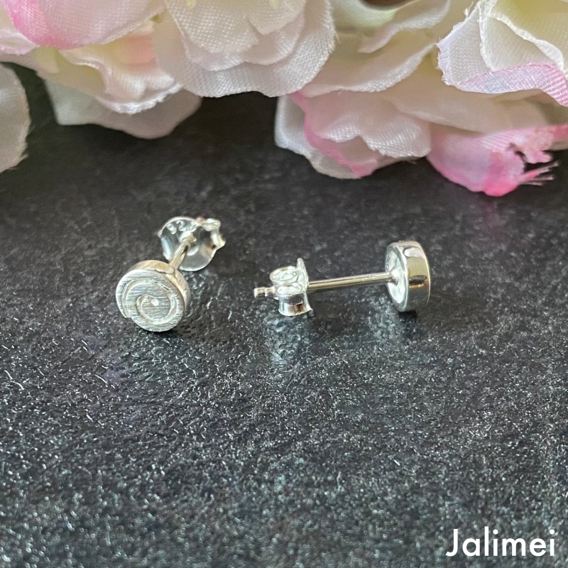 Der niedliche Ohrstecker Minispirale in Form einer kleinen Spirale aus 925er Sterlingsilber. Die Oberfläche ist mattiert. Der Ohrstecker Minispirale hat einen Durchmesser von ca. 5 mm und ist ca. 1 mm dick.