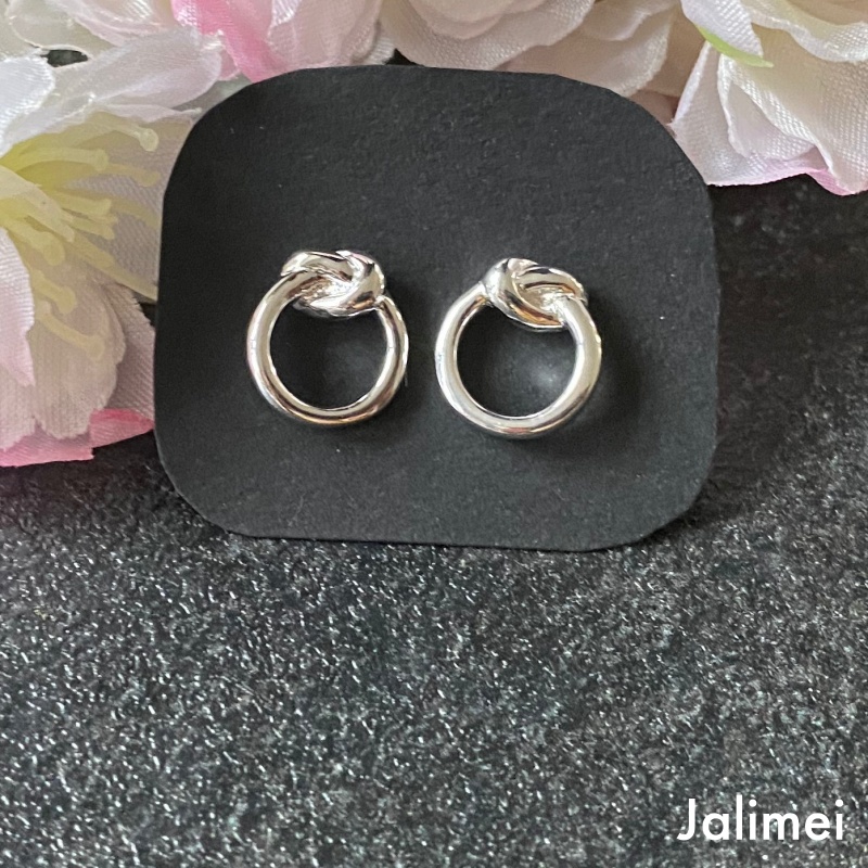 Der Ohrstecker Ring mit Knoten aus 925er Sterlingsilber ist sehr neckisch gemacht. Gearbeitet ist ein offener Ring (ca. 10 mm), der am oberen Ende „geknotet“ ist. Der Stecker sitzt hinter dem Knoten und hat zwei Einkerbungen, an denen die Feder gehalten wird.